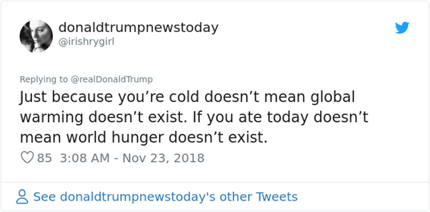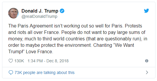 Here, he states that the Paris Agreement, which Obama agreed to, shouldn’t be spending large amounts of money that people want spent elsewhere. The problem is (in my opinion), by calling climate change a ‘hoax’ and ‘fake news’ he is being ignorant and short-sighted.