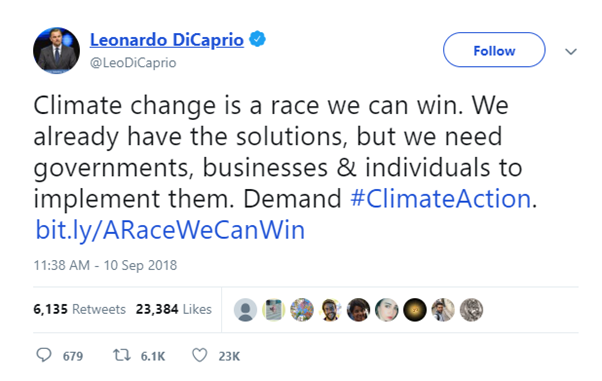 In his tweet Leo is saying that we must act quickly, however he remains positive that action can be taken to solve or reduce the problem if people actually start acting.